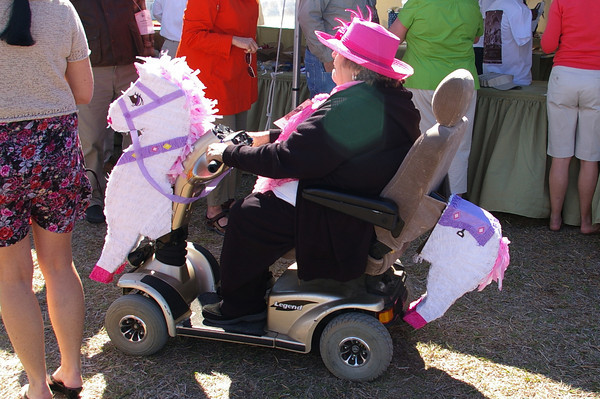 So, it was a lovely day. Slightly cool at first, so we wrapped up in blankets to fight off the wind and covered our cute sundresses for a bit. But I had a great day sipping mimosas, eating chicken salad on croissants and munching on fresh strawberries. I hung out with great friends and caught up with what was going on in life… and then, I got to do what you only truly get to do with very good friends, who don’t judge you…. We people watched and totally judged and cracked jokes about what other people were wearing and doing J. Examples that are too priceless to not mention: a older woman in a motorized scooter. She was dressed very nicely, had a great hat, and I was getting around pretty well in that scooter. It was hilarious because she (or someone) had cut a giant piñata of a horse in half and had the front part hanging off the front of the scooter and the rear end on the back. Seriously… papier-mâché in full on attempted gallop. Then there was the woman who took her lovely hat and stuck two plastic pink flamingos in it. Also, I would be remiss if I didn’t mention the women who had giant plastic horse heads sticking out of their hats, with the horses’ muzzles holding beers. There were plenty of way too short dresses and a little too much cellulite hanging around… I have cellulite myself, but I make damn sure it isn’t hanging out. Of course, there are all the drunk college students who are stumbling around… highly entertaining as the girls try to walk in the wedges and not fall on their face, or the drunk guy running after a hat that has blown away. One never ceases to find entertainment at Cup.
