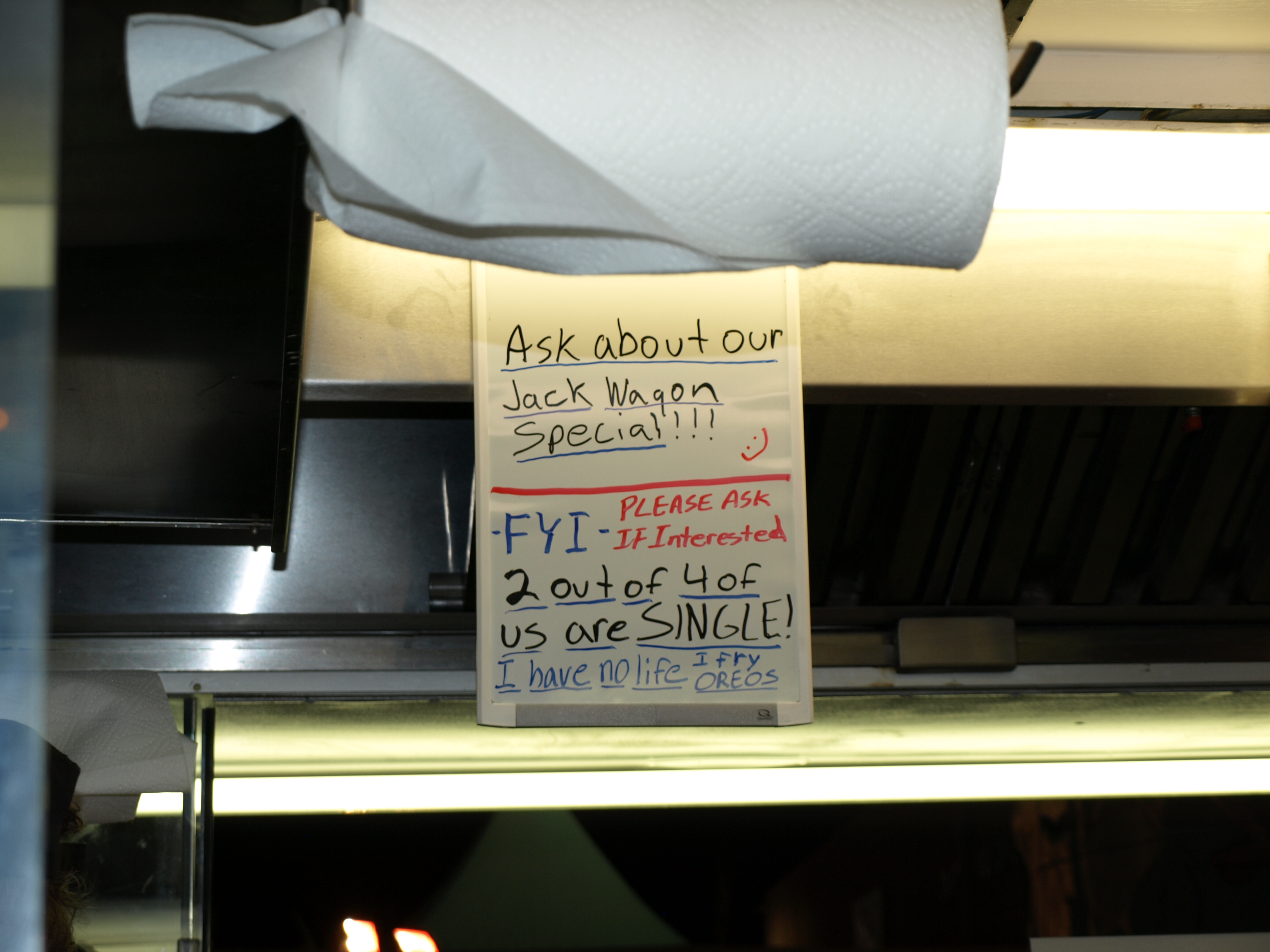 I went with the hot dog, French fries and root beer float… but it was fun to be in a group because everyone got different things and we could see what they looked like. There were funnel cakes, deep fried mushrooms, deep fried snickers bar, caramel apples, stuffed chicken wings (stuffings such as: mac and cheese, stuffing, jalapeno, and so forth), and the bacon cheeseburger with Krispy Kreme doughnuts and buns (all I could do was stare at that one as they ate it)!