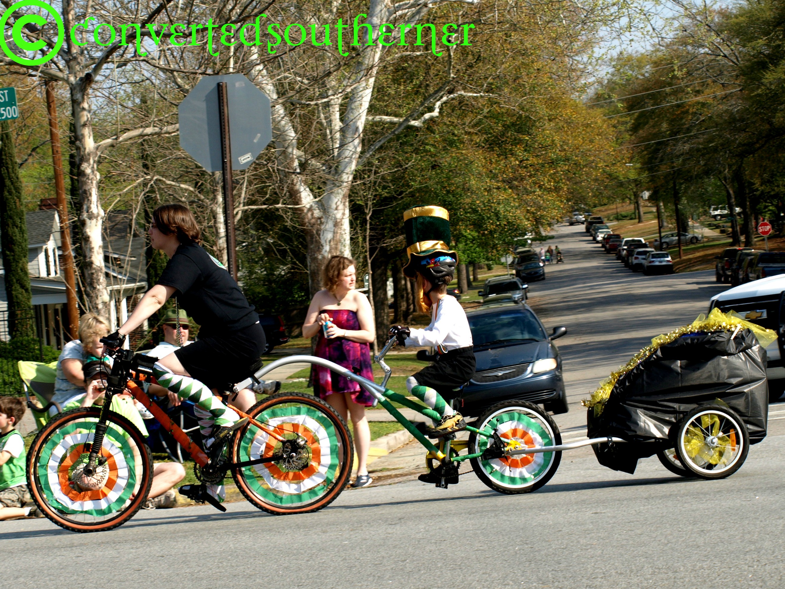 Yep, that is someone dressed as a leprechaun on a bike.
