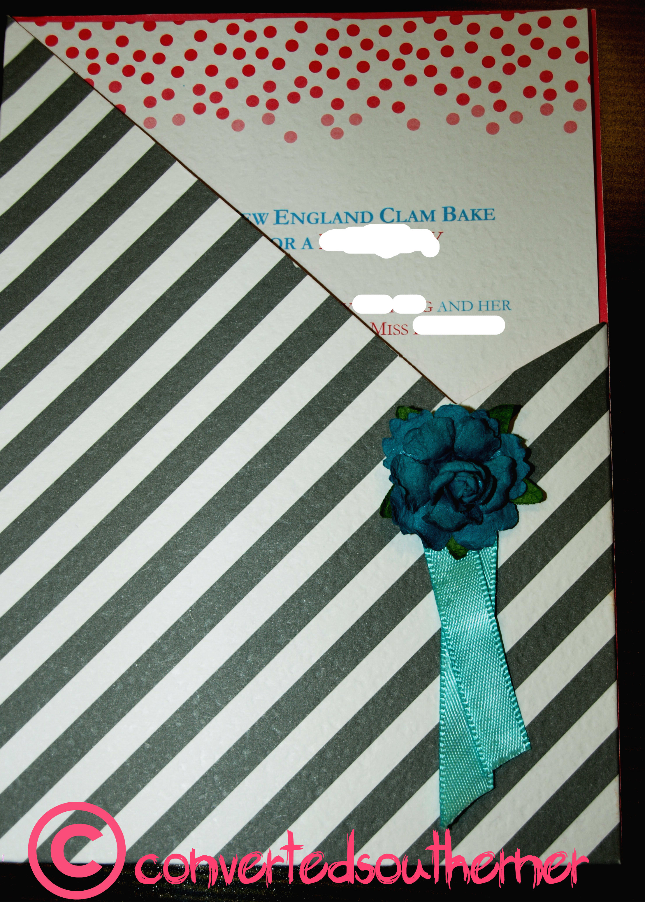 I loved these invites. They were very Gail. Teal and pink with shades of gray with all sorts of different designs.