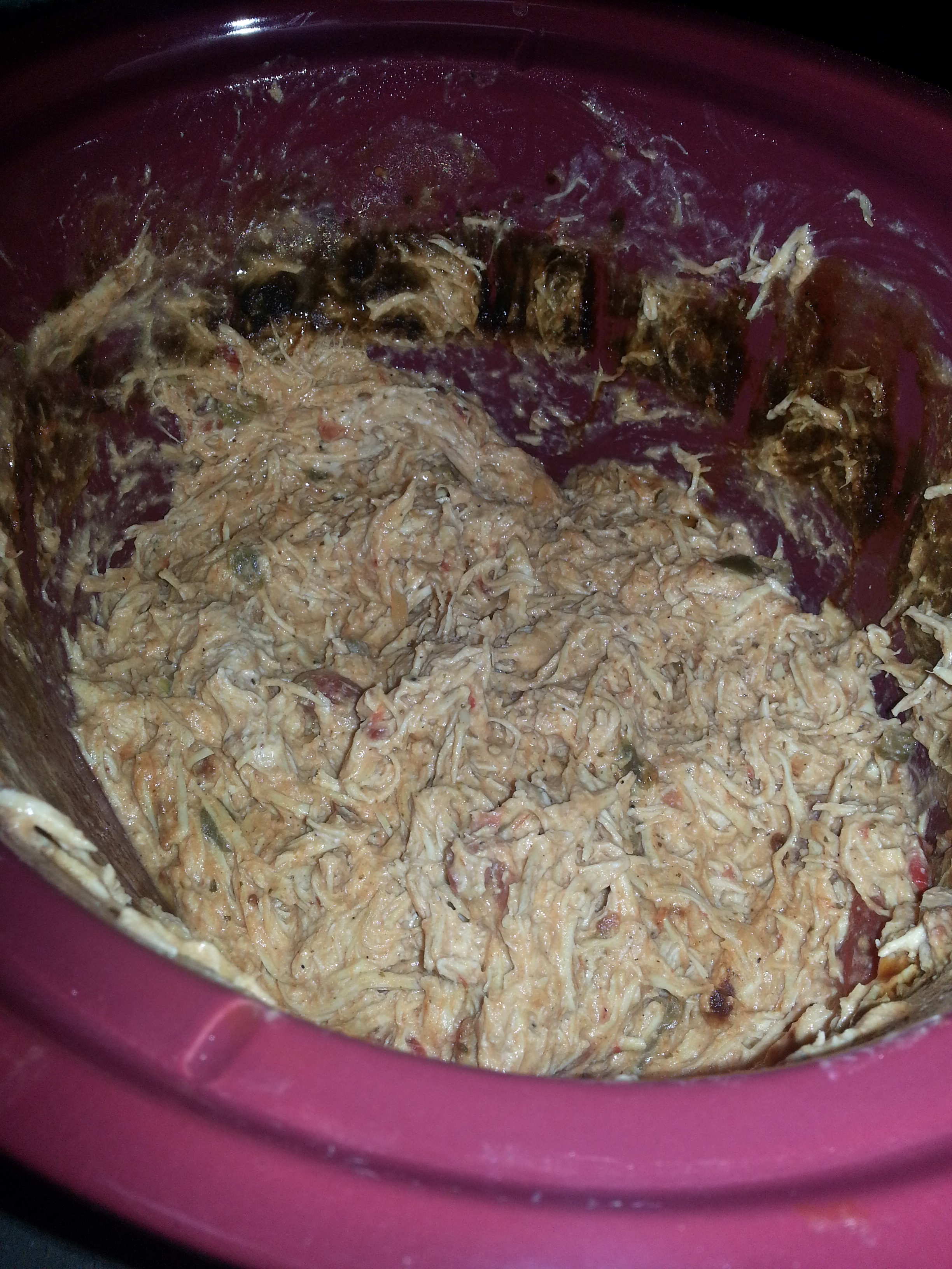 You could eat this a number of ways… on a salad, as a dip, made up as a sandwich. I eat it rolled on a tortilla. I heat the tortilla for 10 seconds, then spread sour cream on it, sprinkle shredded cheese on it and load it up with chicken. Roll it up and eat! It is very good and very easy to make. The chicken freezes really well too!