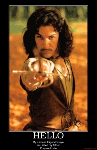 Of course, she hasn’t seen the movie, so she didn’t get the joke. Which is even more tragic. I immediately went to YouTube and made her watch the trailer… which I have to admit, movie trailers in the 80’s may not have been the best. But the movie came out in 1987, I was like 6. She wasn’t even born until 1991. I’m tempted to take a Friday and make all three of these lovely ladies watch the movie so they can get the pop culture references. How can someone not know what it means when you hear: “Hello. My name is Inigo Montoya. You killed my father. Prepare to die.” I mean, I typed “Hello. My name is” into Google a minute ago and the rest of the sentence was the first thing to pop up before I finished typing! Inigo Montoya even has a Wikipedia page!
