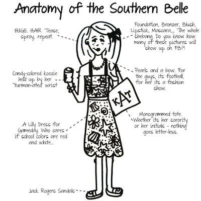 Ok, I came across this on interest a few months ago and I couldn’t stop laughing. A visual diagram: the anatomy of a southern belle!