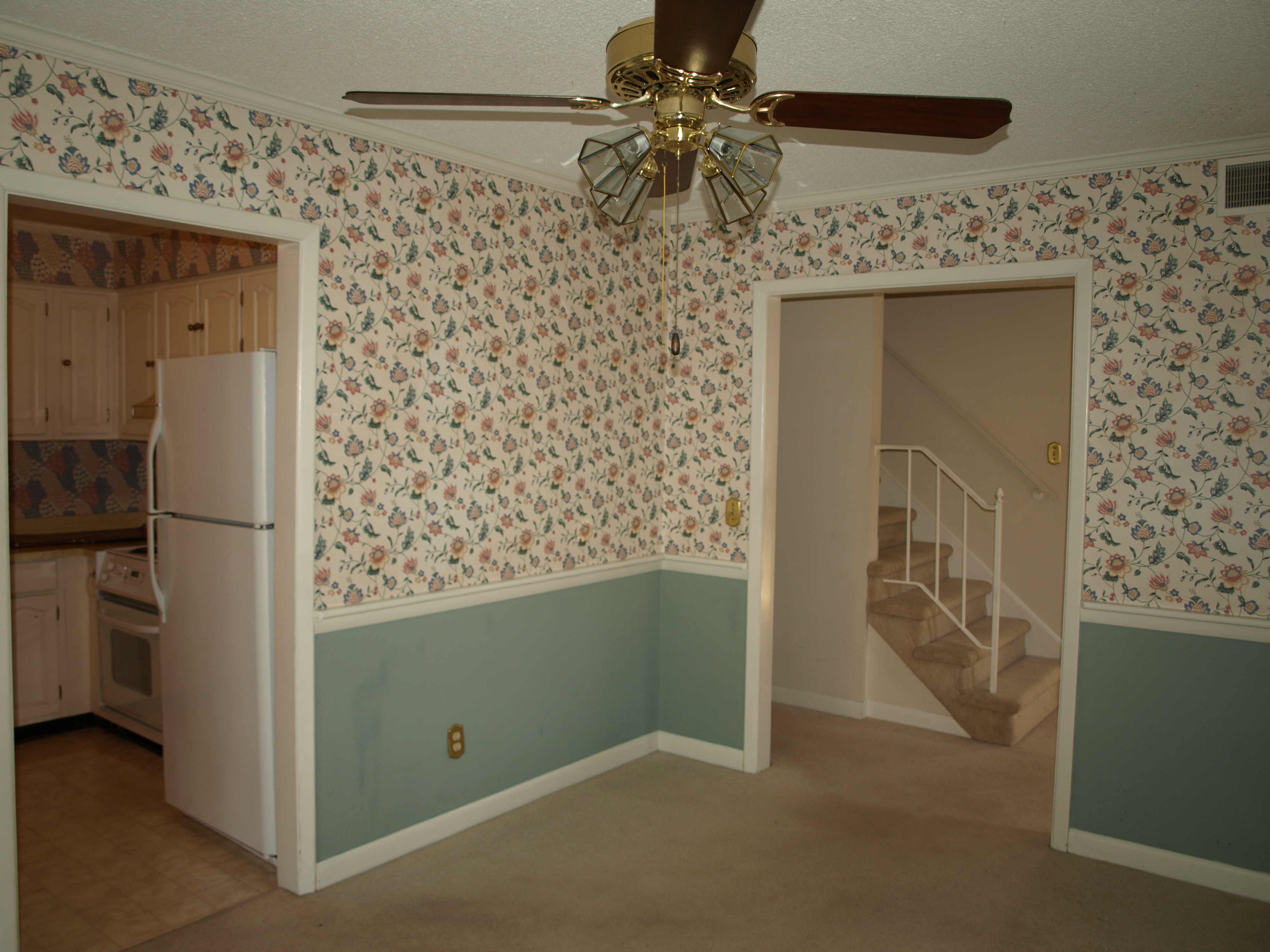 It is a 3 bedroom, 2.5 baths, all-brick, end unit. 1,500 square feet. Built in the 1970s and has only had one owner… a non-smoker! The majority of it was updated in the early 1990s from the mid-1970s look. It is in the suburbs, but close to a lot of good stuff (shopping, restaurants, a park, etc). It has a lovely pool and is a nice area. The value of the condo is somewhere in the the mid$80,000. We originally listed it at $75,000 at the suggest of the realtor who said that was “priced to sell.” After a couple months the family dropped it to $65,000. Other units that are smaller have gone for $65,000 to $75,000 in the last several months. Six months after we put it on the market we had one almost deal that fell through. A couple of crap offers from neighbors (why they would want two units is beyond me). Then we had some internal family debate and from there the decision was made to actually do some work on the condo. While everything was fine structurally, there were definitely some cosmetic changes that needed to be made.