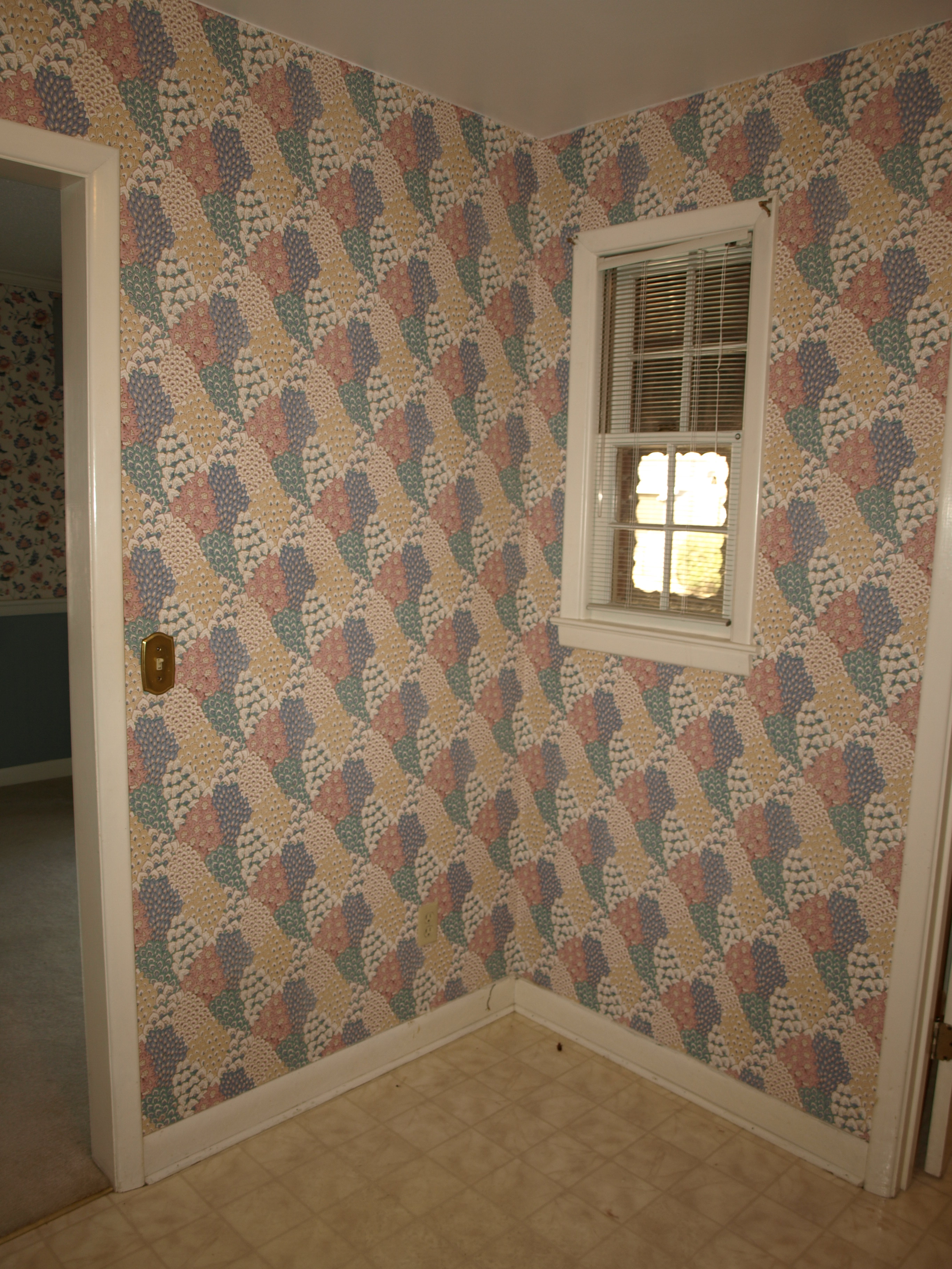 Actually, with the removal of the wallpaper and a few repairs, it’s adorable! I think once the wallpaper comes down in the kitchen you could totally make those yellow counters work. White and yellow are classic! Don’t despair! I used to stage homes for a living and theres lots of promise in that place!!