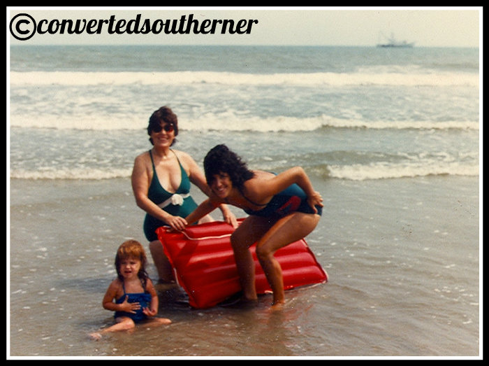 Since I was in Hilton Head, SC this week for a quick birthday vacation I thought I would throwback to my first ever trip to Hilton Head in summer 1983. I was two and this is me on the beach with my Nana and Aunt Wen. Don’t you love the 80’s swimsuits?