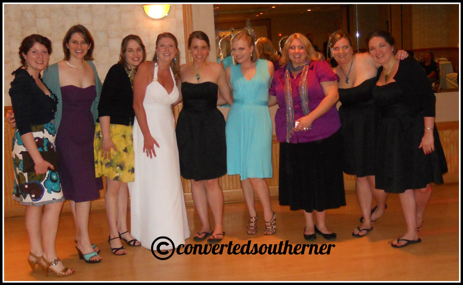 Today’s Throwback is from four years ago at Gail and Puff’s wedding. Happy Anniversary to my dear friends! They got married back in the Fort at a sweet wedding surrounded by friends and family. It was a low-drama, yummy cake-filled, awesome music kinda night. I’ve known most of people in these pictures for nearly 20 years and it was such a fun night dancing, laughing and drinking. Clearly, there was a lot of alcohol consumed in some of these photos. All of the bridesmaids donned flip flops by the end of the night to rock with our cute dresses… with pockets. Love dresses with pockets! So, a smattering of my photos from that evening!