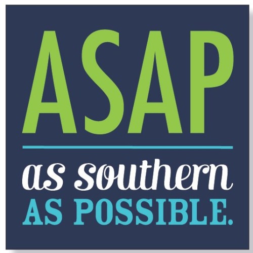 While the company was not referring to “As Southern As Possible” I did get a good laugh over how my brain was functioning… I didn’t even realize it was already a southern acronyms! So ASAP: As Southern As Possible!