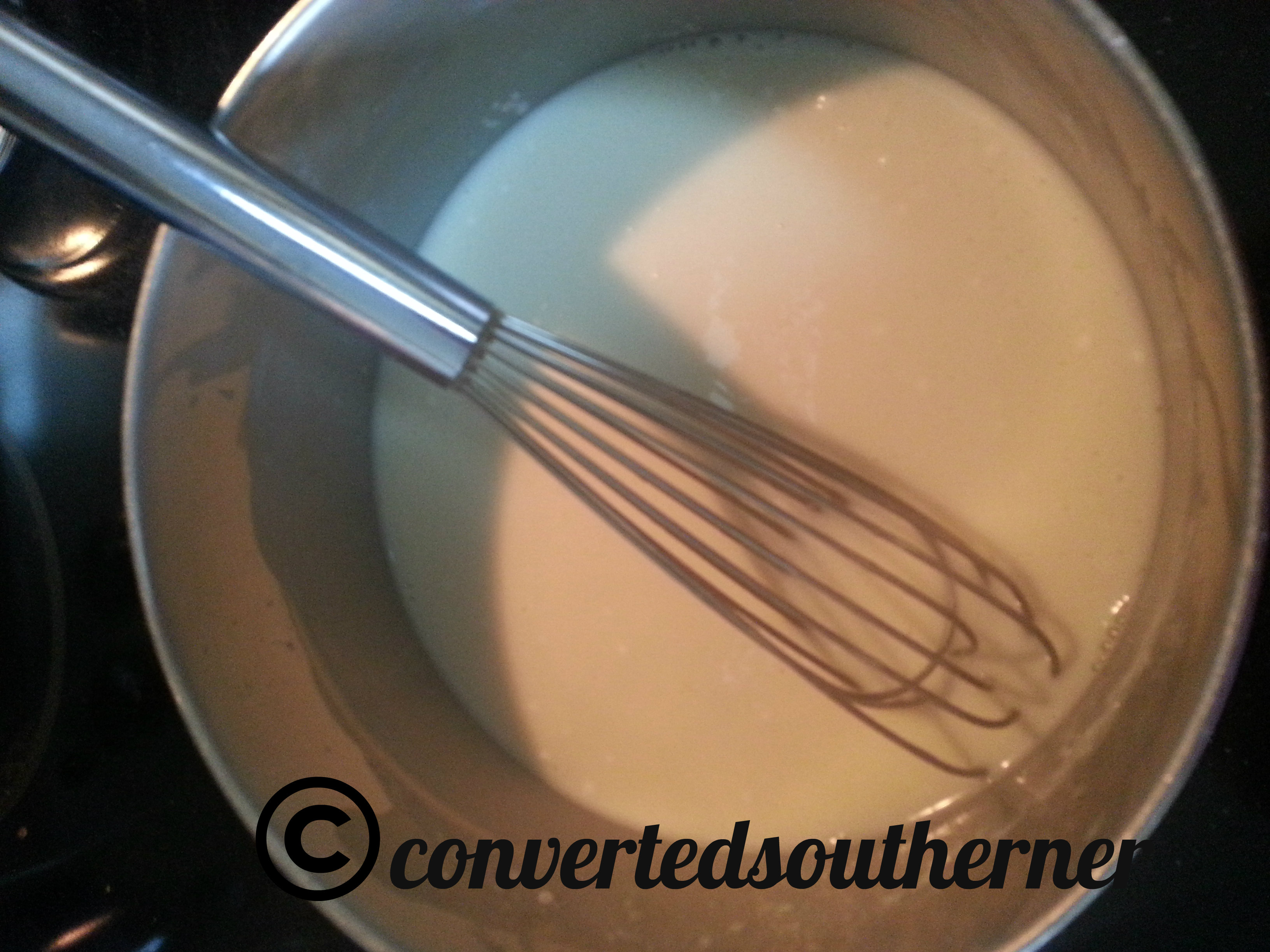 - Then add the milk, slowly